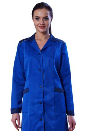 Для пошива данного вида спецодежды используется смесовая ткань с содержанием хлопка и полиэфира. Она экологична, хорошо пропускает воздух, устойчива к истиранию. Халаты классического стиля с застежкой на пуговицы и накладными карманами универсальны и удобны.