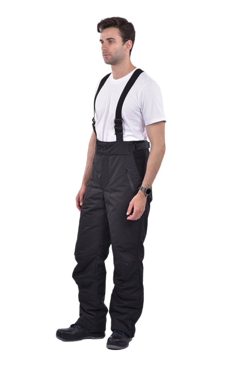 ➠ Брюки утеплённые: притачной расширенный пояс, бретели на застежке фастекс. Два боковых кармана на молнии. Внизу боковых швов обработаны разрезы, застегиваются на тесьму «молния» и закрываются клапаном на липучке.